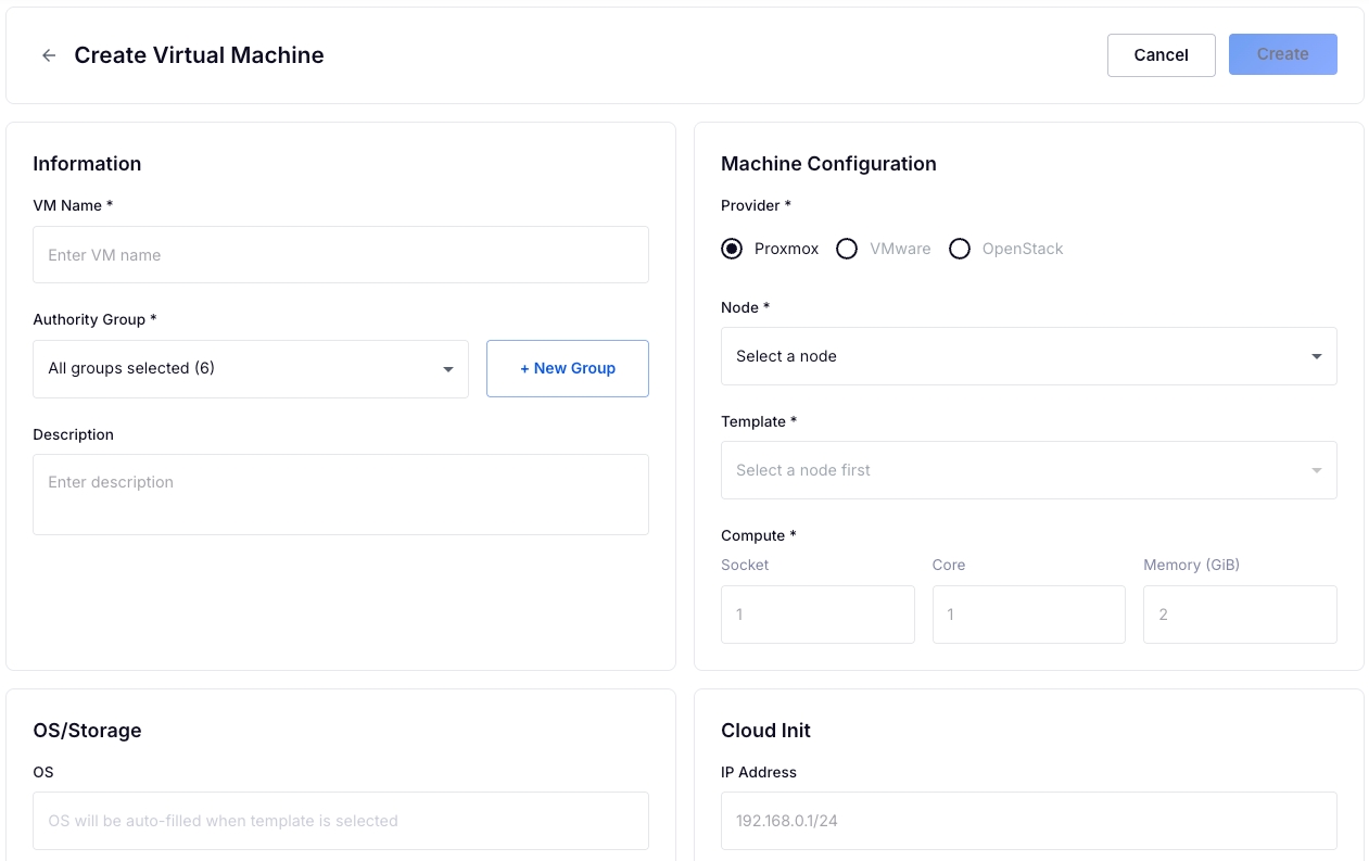 Provider: Proxmox, VMware, OpenStack