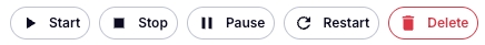 Start, Stop, Pause, Restart, Delete