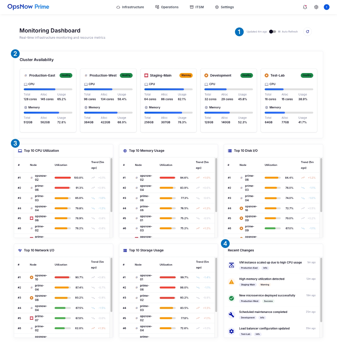 Top 10 CPU Utilization, Memory Usage, Disk, Network