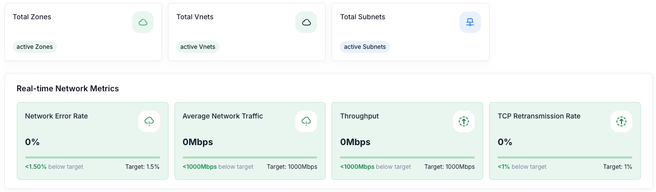 CIDR, Gateway, Vnet Name, Resource Status, Created