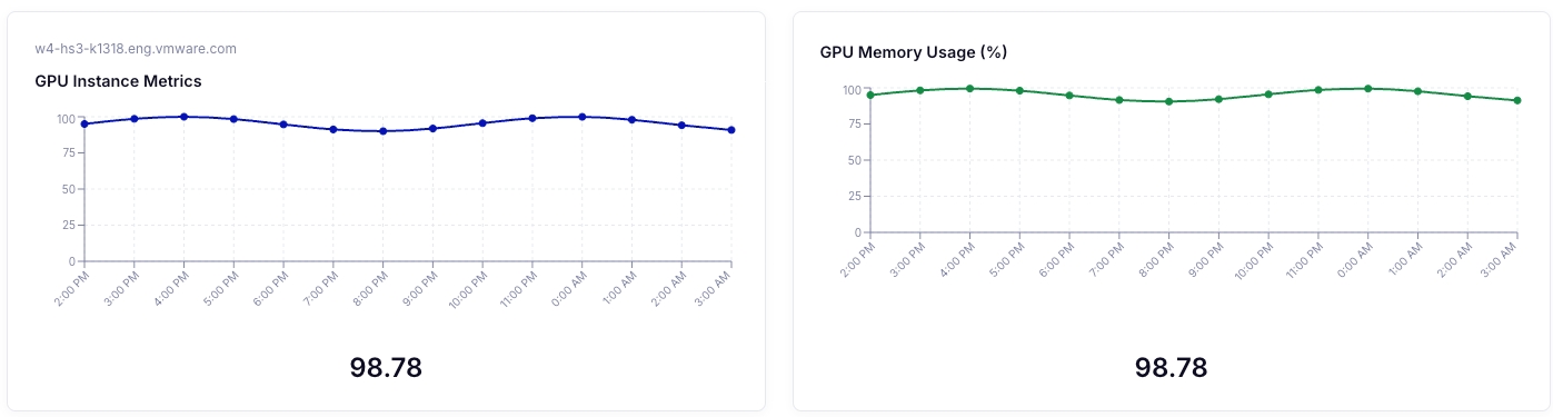④ GPU InstanceのMetrics及びMemory Usageのラインチャートを表示します。