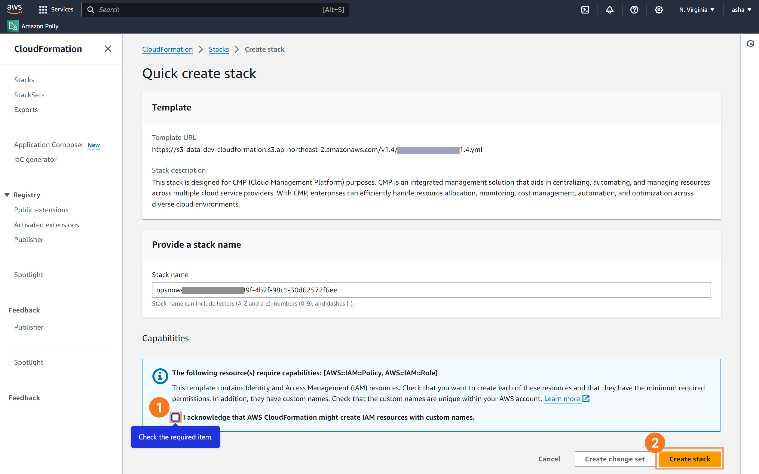 * Ensure that you are logged in with the AWS account you want to register with OpsNow. Duplicate registration of an account already registered with OpsNow is not allowed.