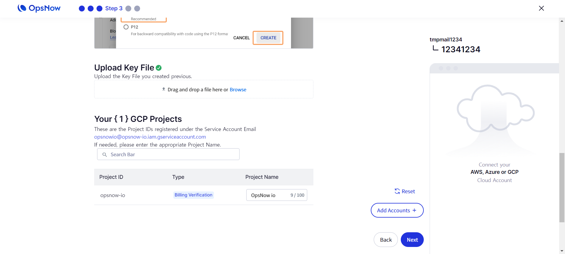 ### 5. Upload Service Key on OpsNow