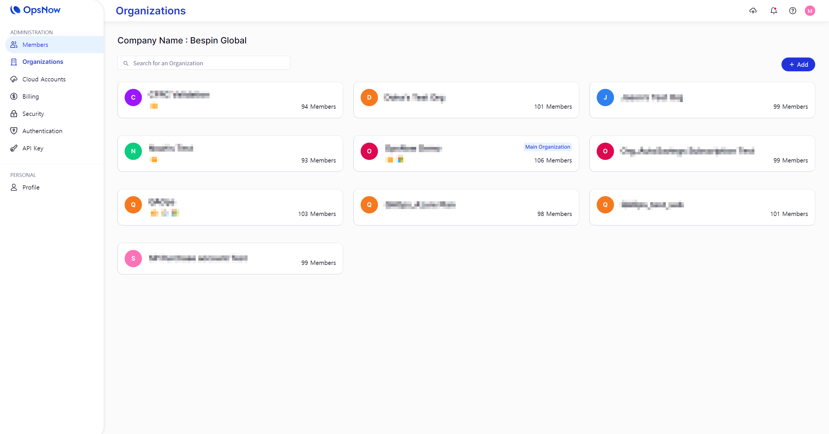 ※ You may create up to 10 Organizations per account. If you need additional Organizations, please contact [OpsNow ](https://www.opsnow.io/faq/main)Support.