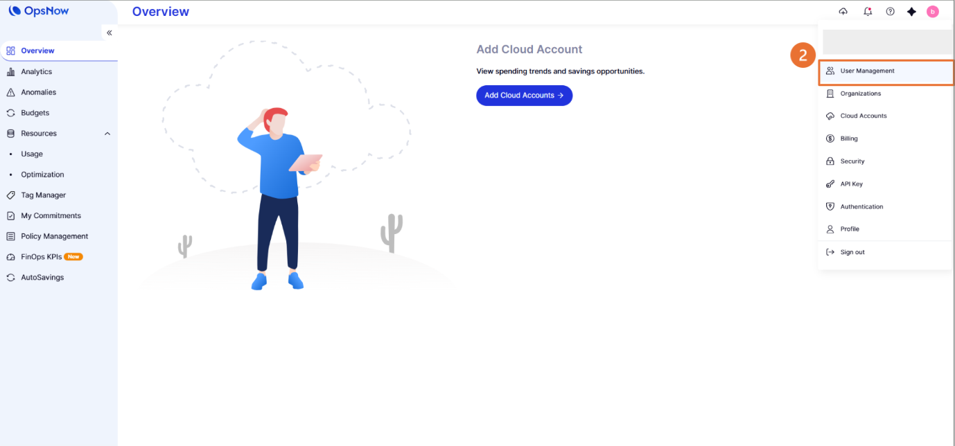 Members with Owner or Admin permissions in OpsNow can invite new members to the organization. Invited members can engage in cloud cost-saving and analysis activities according to the permissions granted to them within the OpsNow service.